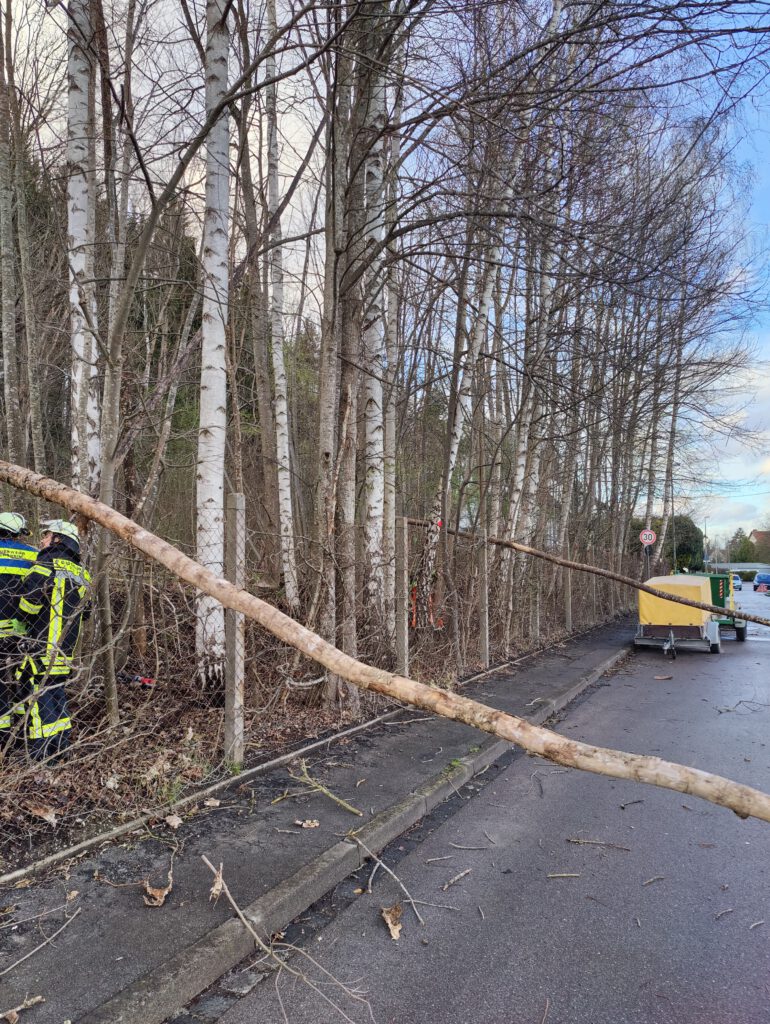 Am 8. April um 17:28 wurden wir erneut auf die Verbindungsstraße zwischen Wellenburg und Radegundis alarmiert. Auf gleicher Höhe, wie der Einsatz am Vortag hing beim Eintreffen ein Baum queer über die Straße in einem anderen fest und drohte herabzustürzen. Die Straße wurde kurzerhand gesperrt und der Baum mittels Motorsäge kontrolliert zu Fall gebracht. Bei Tageslicht konnten wir auf dem an die Straße grenzenden Grundstück mehrere morsche und zum Teil bereits abgebrochene Bäume feststellen. Durch den Gruppenführer die Polizei zur Ermittlung des Grundstückeigentümers hinzugerufen. Die Bemühungen der Polizei den Eigentümer ausfindig zu machen blieben leider erfolglos, sodass wir nach Rücksprache mit der Polizei eigenständig gefährdete Bäume fällten, um eine weitere Gefährdung auszuschließen. Für die Dauer der Fällung von insgesamt 15 Bäumen wurde die Straße komplett gesperrt.